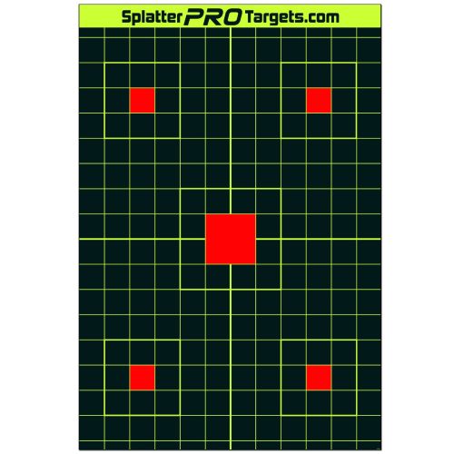 Compare our Splatter Targets to anything on the market. Our targets lay flat and STAY FLAT. If you’ve ever had a target curl up on you when you’re at the range you know how frustrating that can be. Our targets are printed on sturdy 10 pt. board stock, not cheap paper. Our goal was simple. Make the best target on the market and we’ve done that. The Bright Fluorescent bullet holes are visible in all light conditions and help you quickly get on target and stay on target. Perfect for air guns, rim fire and center fire rifles and pistols. Our targets work great for sighting in shotguns as well.