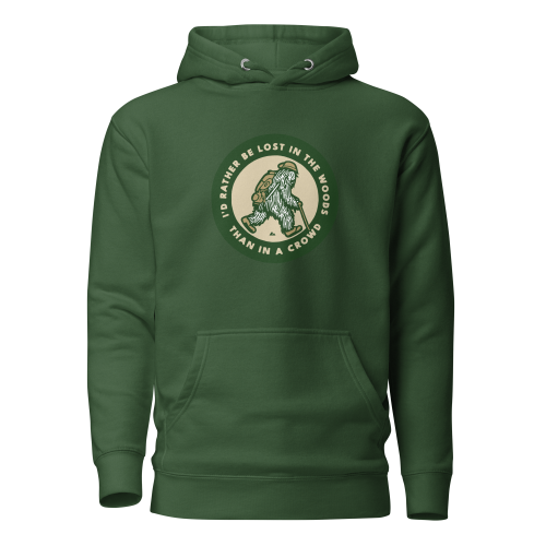 Introducing the "Be Lost" Everest Hoodie – a timeless and expressive piece that embraces the call of the wilderness. Crafted with care, this classic unisex hoodie is more than just clothing; it's a statement piece adorned with a contemplative yeti in the great outdoors, accompanied by the saying "I'd Rather Be Lost In the Woods Than In A Crowd."