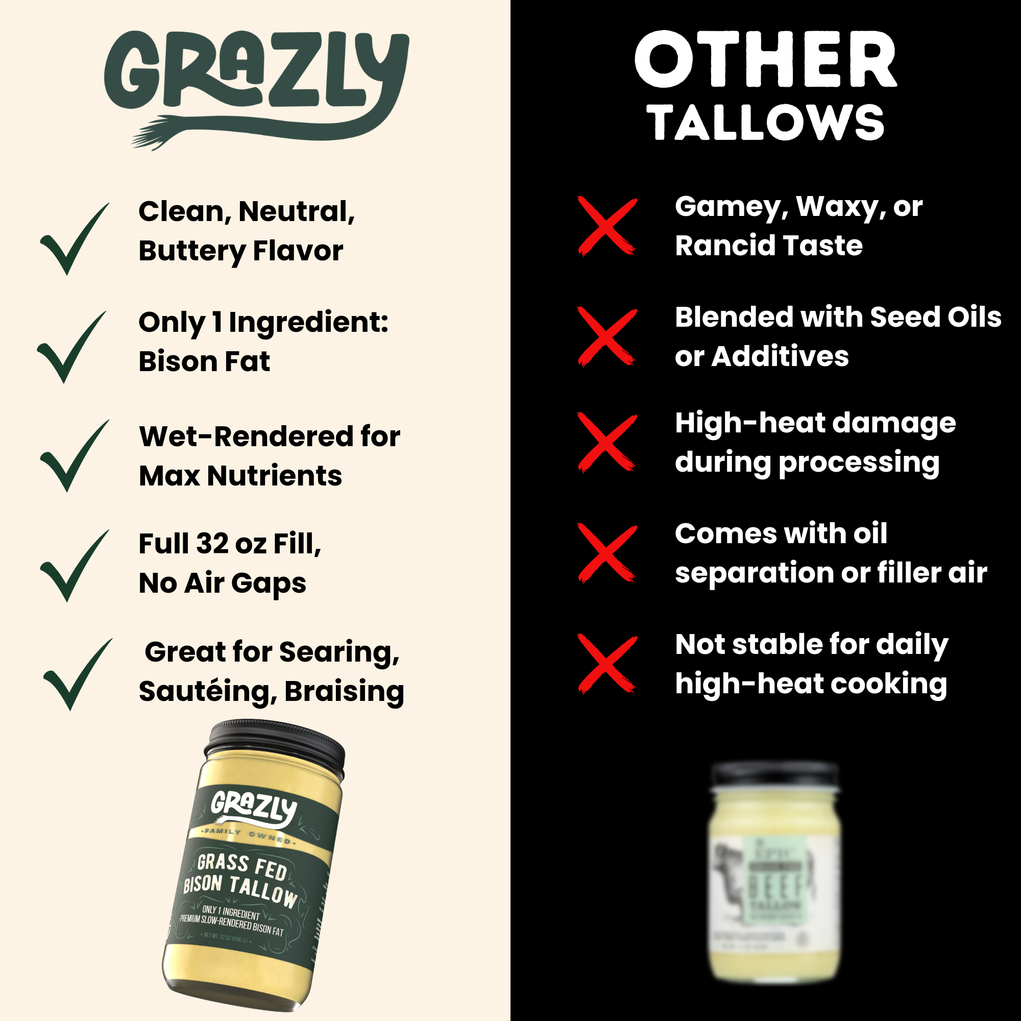 - Product Name: Bison Cooking Tallow - 100% Grass-Fed & Finished