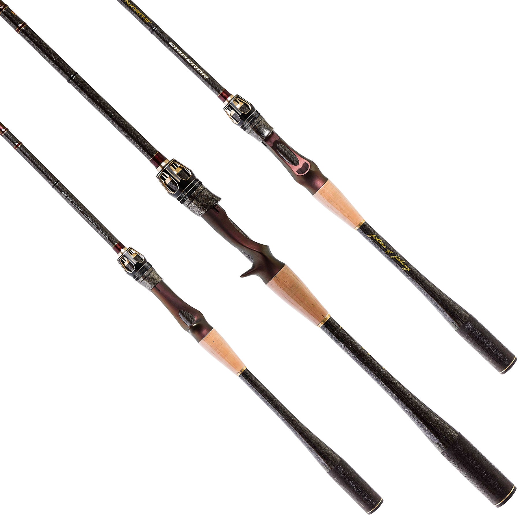The Emperor is truly the “King” of rods and is ideal for those who are serious about fishing. This rod is made of SkyFlex 40-ton Korean manufactured prepreg using MLS and is combined with Fuji guides and a custom reel seat. This rod has the perfect balance, comfort, speed, and power one would need to get those basses out of the water. The 4-D hydrographic paint allows the rod to change color as the light changes on any given trip.