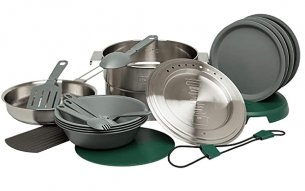 Stanley Base Camp Cook Set for 4. For those times when you do want to cook a meal in the outdoors, there’s nothing like having a dedicated cook set that packs up super easy. The very nature of a nesting cook kit is really handy. This kit has everything you need too. It comes with a pot, pan, lid, trivet, plates, bowls, and silver ware (plastic lol!) and your cooking utensils. There are also instructions on how the kit nests engraved in the lid, so you don’t forget how to pack it up. Super convenient.