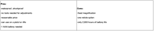 If the red dot is not mounted properly it can cause damage to the lens. Also, always carry an extra battery with you, so you never have to worry about your optics power being low.