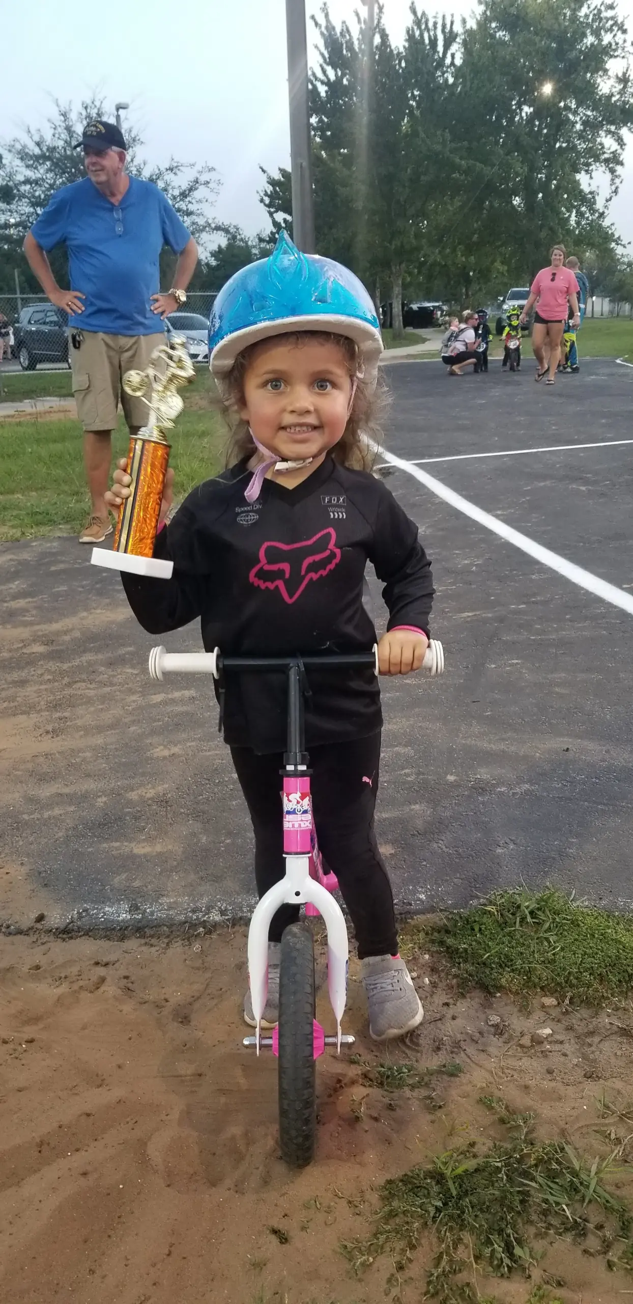 We start our toddlers with balance bikes. These bikes have no pedals and are designed to help kids learn to balance on a bike frame first. We even had our daughter race her strider bike in local BMX races. It was such a fun way to compete and increase her skills at the same time.
