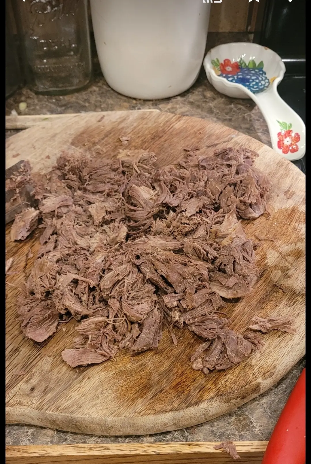 Step 2: Remove Duck and shred the meat. Save any remaining broth. Toss the bay leaves.