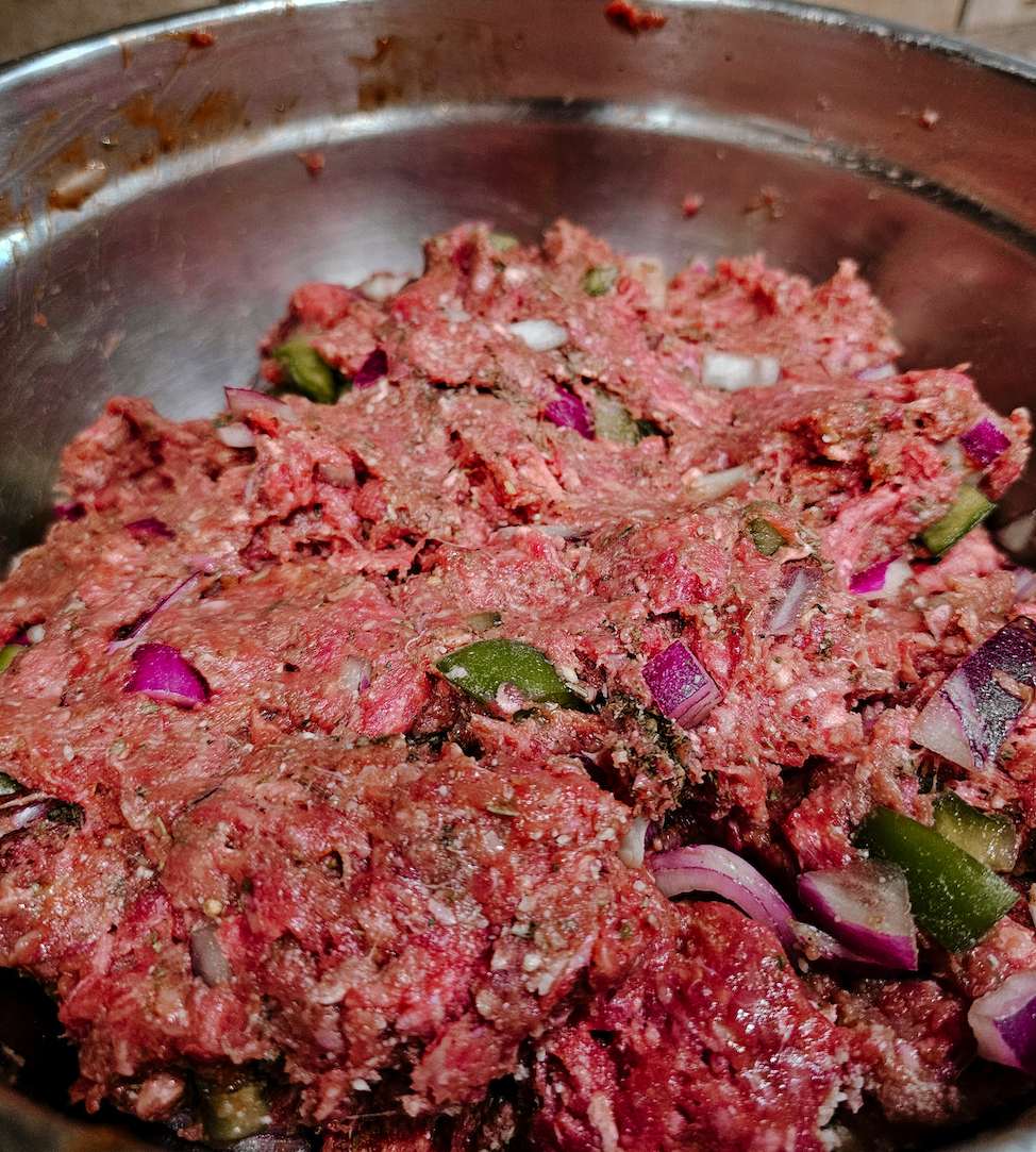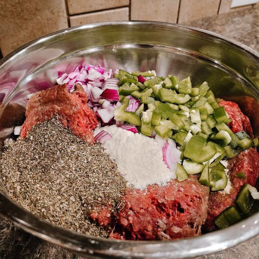 Step 4: Once everything is mixed, shape the meat mixture into a loaf, either directly on a tray or bread loaf pan. Now it’s ready for the pellet grill.