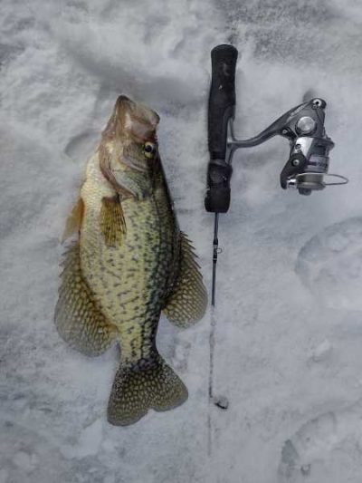 The smallest size spinning reel you can manage spooled with a line between 2-8lbs will be the deal for most ice fishing applications. There are spinning reels specifically made for ice fishing but using a downsized reel that you might use for trout or panfish during the open water season will work just fine. The newly popularized inline ice fishing reels are another great option, anglers prefer these for their ability to drop baits down quickly, simply, and avoid the dreaded line twist common when jigging with a spinning reel.