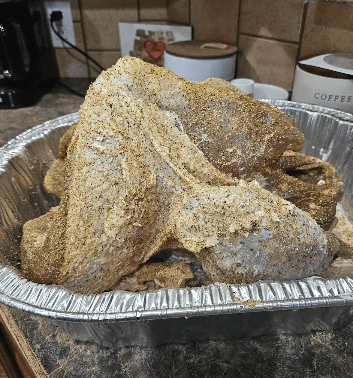- Remove turkey from brine and rinse of any excess brine.