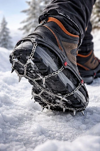 There are other options out there too. Crampons will give you much better grip on steep icy surfaces, but for most packed trails that’s a sledgehammer – they’re way more than you need. Then there are the more lightweight traction devices like Yaktrax – they do okay on mild stuff but really struggle with proper ice. For most packed winter trails, though, microspikes or snowshoes are probably the way to go.