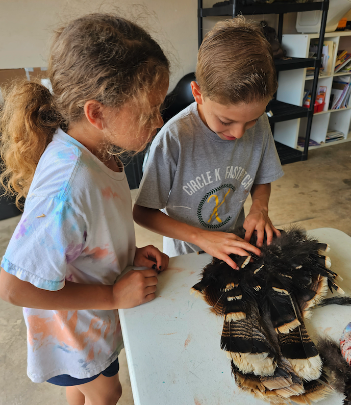My kids love to gather nature “souvenirs.” I have created a bookshelf comprised of our nature resources. Including, our books, flashcards, field guides and much more. This is also an area for them to place nature finds. We have everything from deer antler sheds, shells, lots of rocks, a bird nest, feathers and even Native American artifacts. These pieces offer opportunity for on-going discussion. Additionally, they come to cherish the items, in turn, learning to respect them are the sources, too. I also have foraging bags, ponchos, binoculars and magnifying glasses placed here for their use.