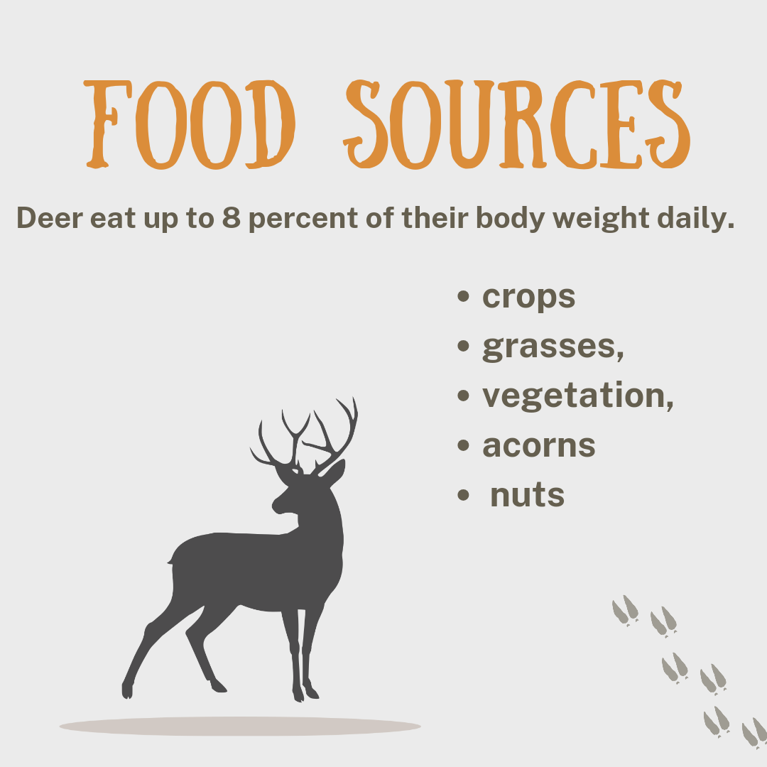 Food Sources can significantly impact deer behavior. Understanding the availability and accessibility of seasonal vegetation in your area helps predict where deer will concentrate during different times of the year. Deer are herbivores, and their movements often revolve around seeking preferred vegetation. You may have heard old timers say, “Waitin’ on the acorns to drop.” Meaning they are waiting to hunt over acorn trees once they drop. Deer prefer white oaks which drop earlier and then will turn to red oaks. This is also why hunters have success with planting food plots and providing feeders.