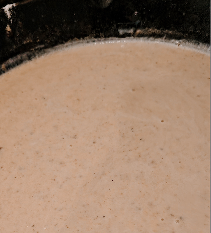 - Add in bacon grease or use remaining pan drips(oil). Whisk around until heated; add Flour while constantly whisking. You want it to be foamy or bubbling; if it starts to clump, add more grease or drippings.