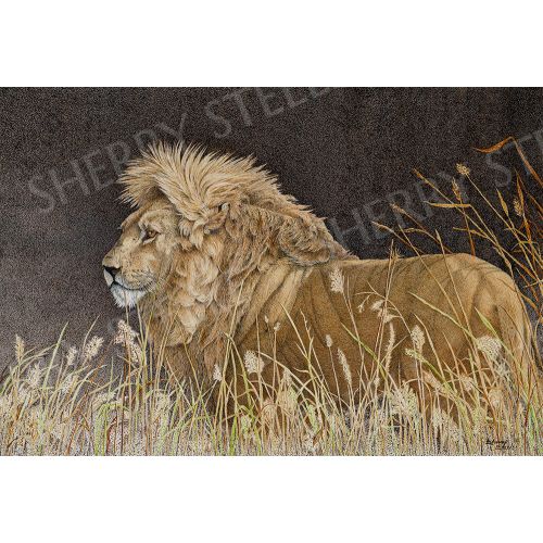 Sherry Steele uses animals to portray the emotions that create the storm of the human condition. She brings a unique style to the field of wildlife artistry with her signature technique using permanent inks. Working from sketches and studies done in the field, she captures the essence of her subjects and presents them as if you were there beside her. Because the animals spontaneously reveal their emotions there is never a need to fabricate an expression. Using her skills of observation and perception, she delights in feeling their unguarded emotion and then sharing it with all who will look into their eyes with her.