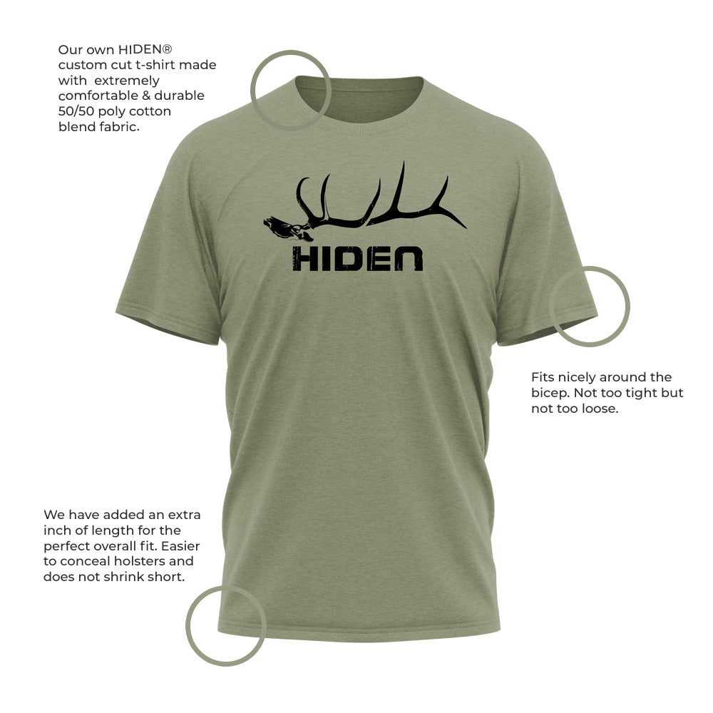 Hiden Elk Skull Olive T-Shirt 50/50 Blend