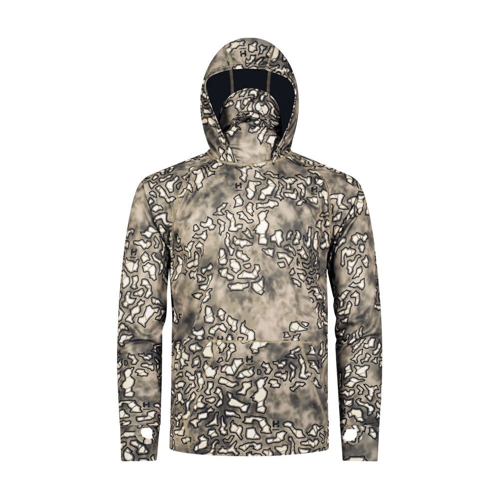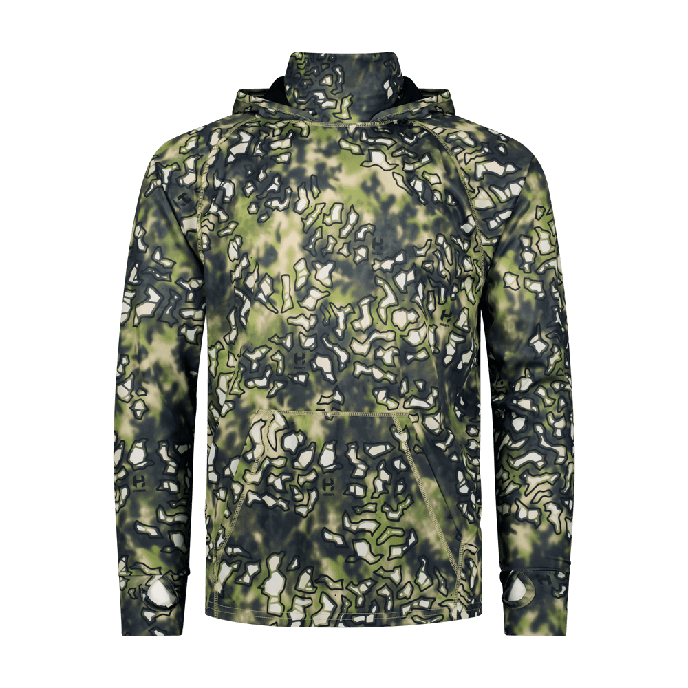 This is the perfect early to mid-season hunt hoodie designed to perform in hot to mild weather for when you have to get in close to game. Made with a highly breathable moisture-wicking fabric that is extremely silent. The HIDEN Reaper Hoodie has a built-in face mask for added concealment,Ā front sewn-in pouch to quickly store items during the hunt, as well as thumb holes to help further conceal the hands during a stalk.Ā