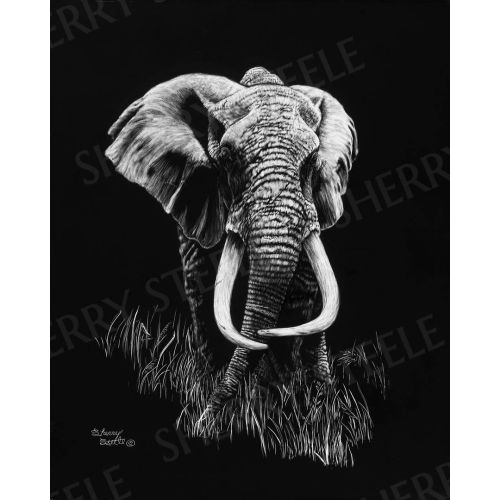 In honor of one of the last great survivors of a long-gone era, Mawingu (Cloud) still stands as a reminder of the majesty of the supreme symbol of Africa. At nearly 60 years old, he has closed the chapter of each of my safaris to Tanzania. Captured in shimmering Scratchboard, he will forever invoke the mystery and power of Africa.
