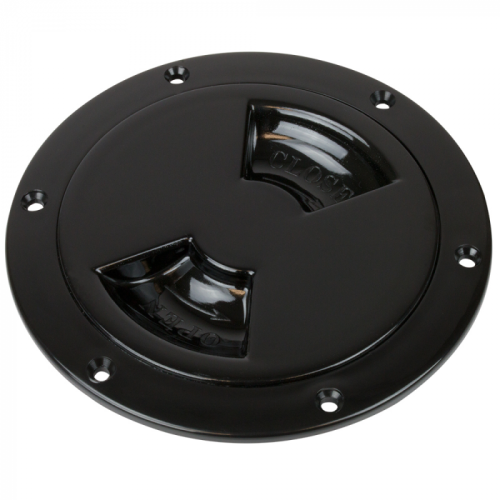 The Sea-Dog® Quarter-Turn Deck Plate is constructed of UV stabilized ABS. Features a new locking system that prevents over tightening, jamming, and cross threading. These deck plates also feature an internal, molded-in collar on the bottom to hold deck plate bags or other round containers. When installing, use silicone sealant on hull or deck surface. Keep threads clean with hot, soapy water. Lubricate with Vaseline or Teflon grease. Installs with six #8 FH fasteners (not included). Avoid contact with acetone or strong solvents.Â