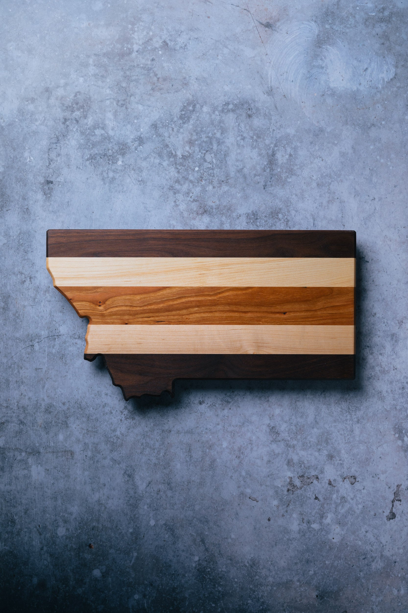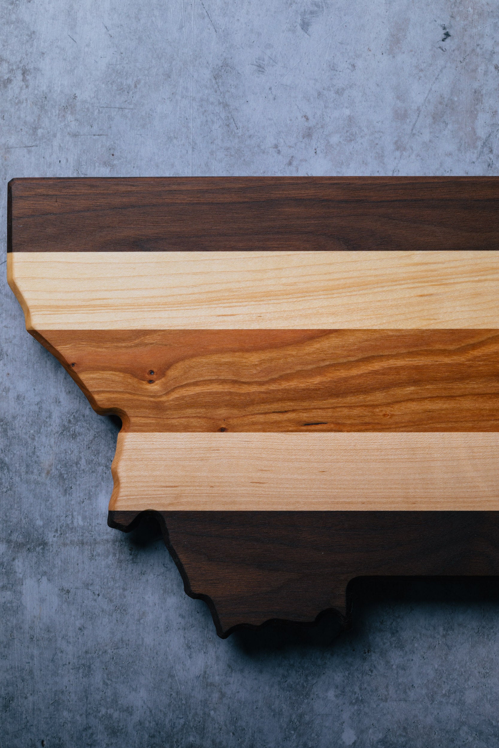Our handcrafted, solid wood Montana state shaped board is perfect for cutting or serving. Personalize it with our laser engraving.