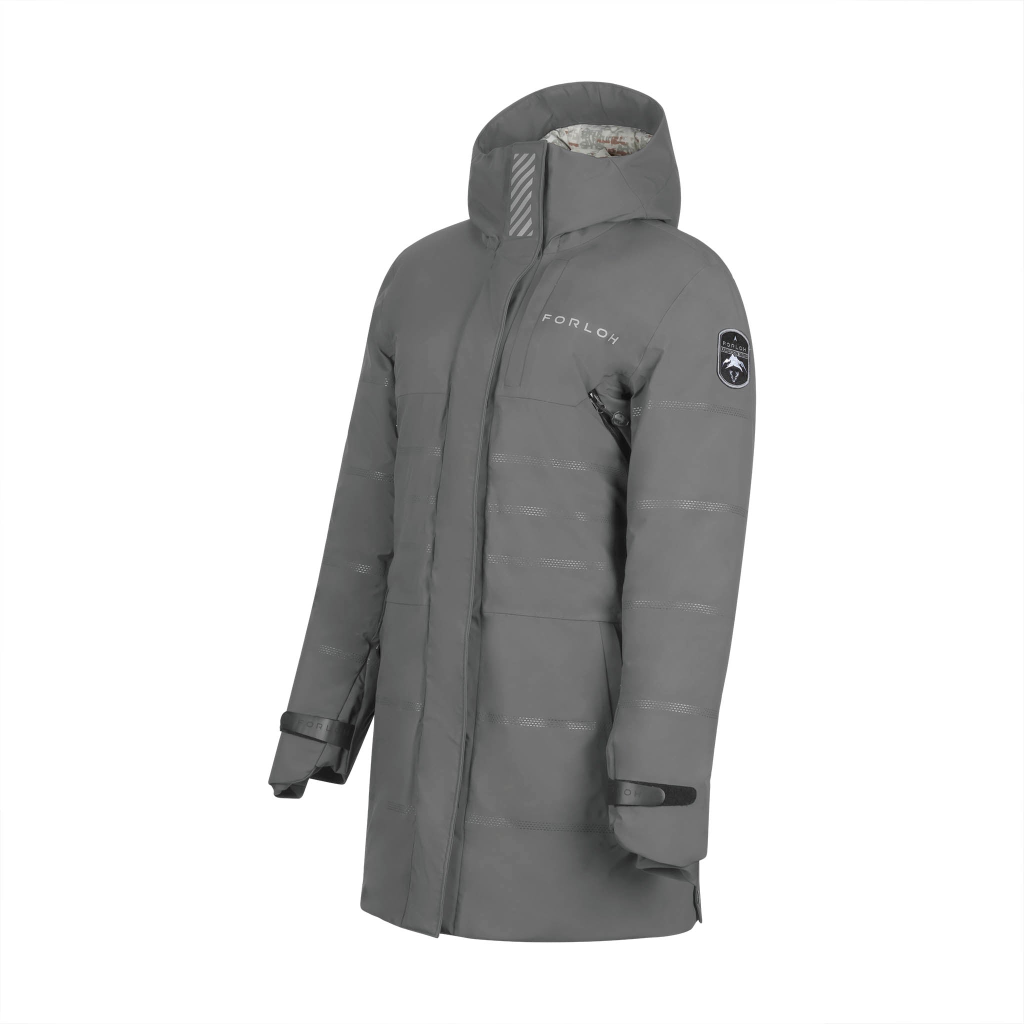 The collection also features the first-of-its-kind responsibly harvested 800+ fill 90/10 power USA down, a major breakthrough in down technology developed in partnership between FORLOH and Downlite Outdoor. The 3-layer shell is fully seam-sealed, waterproof, breathable, and built to maximize durability.