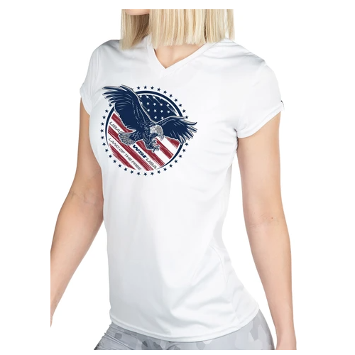 WSI Sports Microtech™ Women's Land of the Free Short Sleeve V-Neck Shirt