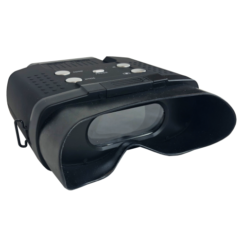 5 simple buttons for straightforward operation. The focus dial on the bottom of the digital night vision binoculars adjusts the view so you can manually focus on any animal or object around you. Can comfortably view with both eyes, including the use of glasses.